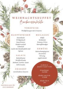 An den beiden Weihnachtsfeiertagen servieren wir ein festliches Weihnachtsmenü, zu dem wir Sie recht herzlich einladen! Für den 26. Dezember 2025 um 13 Uhr gibt es noch freie Plätze – perfekt für den entspannten und genussvollen Familienausflug zur Barbarossahöhle. Sichern Sie sich gern Ihre Reservierung: Tel.: 0152 26488649