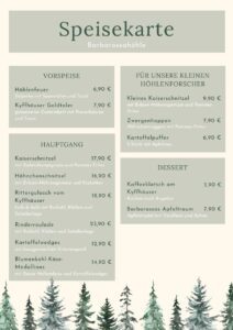 direkt neben dem Eingang zur Barbarossahöhle erwartet Sie Thüringer Gastlichkeit inmitten unberührter Natur. Das Team der Gaststätte freut sich darauf, Sie mit echten Thüringer Köstlichkeiten verwöhnen zu dürfen.